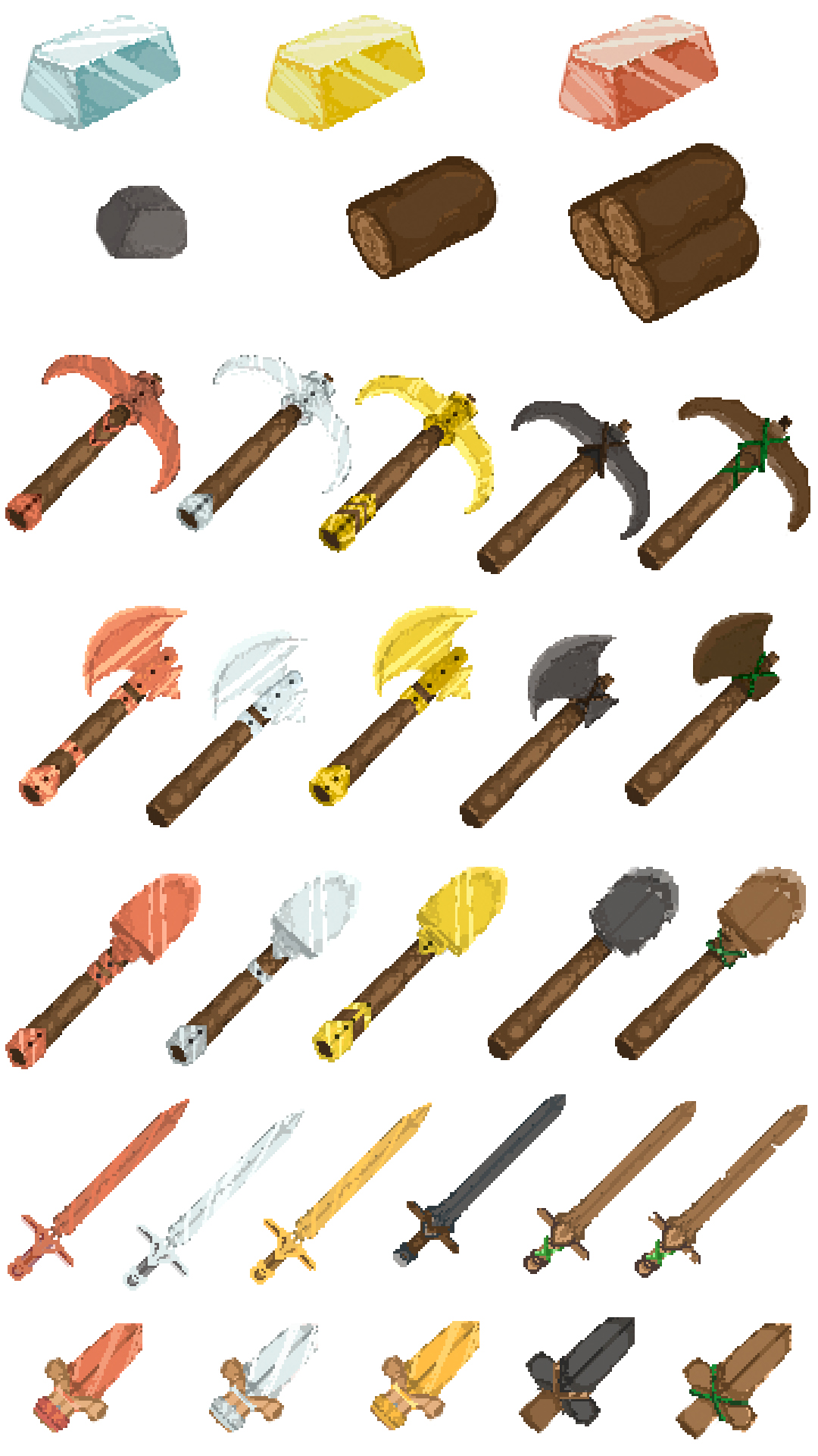 A pixel art asset pack designed for crafting, survival, and RPG-style games.